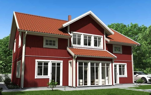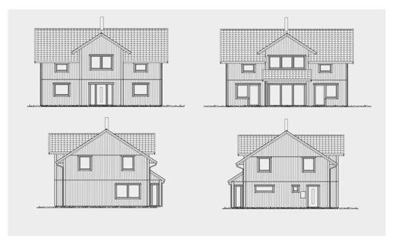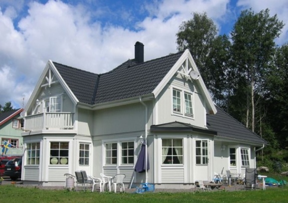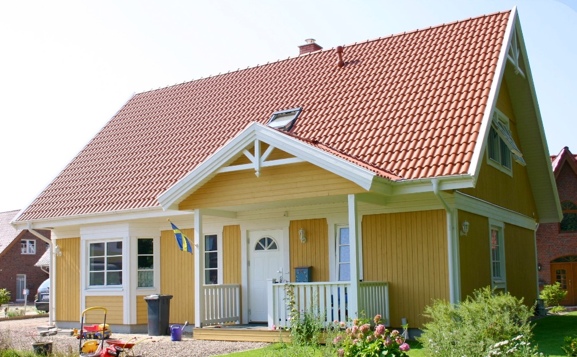 Hier zeigen wir ein 2013 erstelltes Objekt unserer echten Schwedenhäuser, geplant nach Kundenwunsch, Typ SkandiHaus_144 / VästkustVillan.